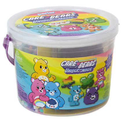 Perler fuse beads are great for promoting skills such as hand-eye coordination, color recognition, basic math and counting, fine motor skills, and imaginative play. Kids will have hours of fun creating beloved Care Bear characters and symbols with colorful fuse beads. Everything is contained in one convenient bucket with a lid and handle. For ages 6 and up. Kit contains 5000 beads, 2 pegboards, a pattern sheet with instructions, and ironing paper. Carebears and related trademarks: ™ & © 2021 Those Characters from Cleveland, LLC.